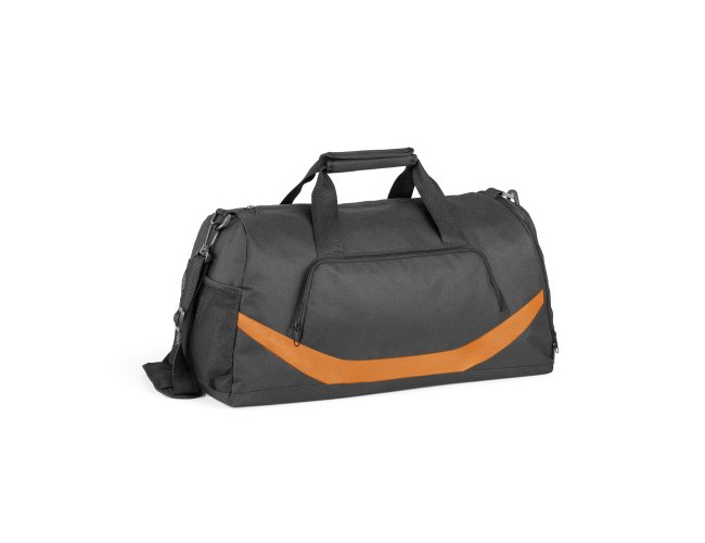 Bolsa esportiva. 300D e 1680D. Fundo com placa semi-rígida. Bolso frontal com fecho e bolso lateral em tela. Bolso lateral para sapatos. Alça de ombro ajustável, com reforço almofadado. 570 x 330 x 300 mm