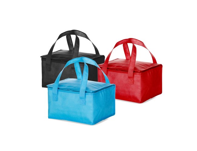 Bolsa térmica 10 litros em TNT com alça para mãos, revestimento interno de manta térmica.