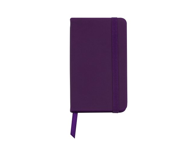 Caderneta tipo moleskine emborrachado de frente e verso liso, marcador de página em cetim e fita elástica para fechar. Contém aproximadamente 80 folhas amarelas sem pauta.