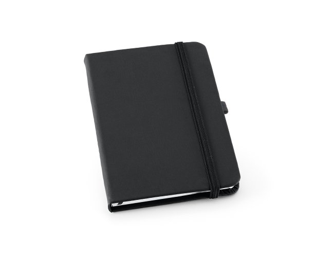 Caderno capa dura. C. sintético. Com porta esferográfica e 80 folhas não pautadas. 90 x 140 mm