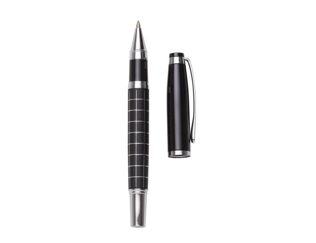 Caneta metal roller preta com detalhes prata e quadriculados. Clip metal com anel superior e anel central prata, possui dois anéis em relevo inferior com ponta prata. Basta retirar a tampa para utilizar. OBS.: PEDIDO APENAS MÚLTIPLO DE 1... Ver mais $(document).ready(function(){ $(#ver_maismob).click(function(){ $(#s_ver_maismob).hide(); $(#comment_2mob).show();});});5 PEÇAS!