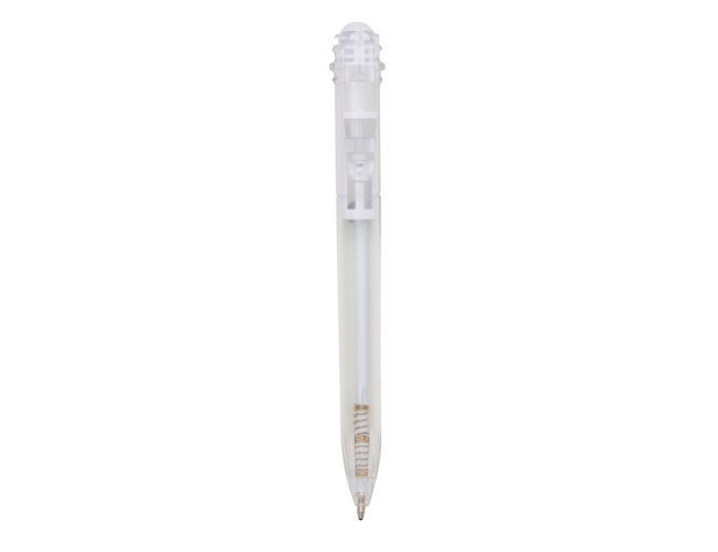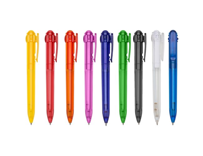 Caneta plástica translúcida inteira colorida com acionador em relevo. Suporte do clip com dois furos em cada lateral e detalhe em relevo, possui anel ?vazado? abaixo do clip e detalhes na parte inferior em relevo. Aciona por clique e... Ver mais $(document).ready(function(){ $(#ver_maismob).click(function(){ $(#s_ver_maismob).hide(); $(#comment_2mob).show();});}); destrava apertando a parte inferior do clip.