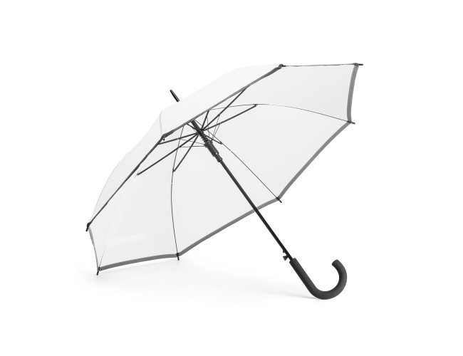 Guarda-chuva. Poliéster. Com faixa refletora. Pega revestida a borracha