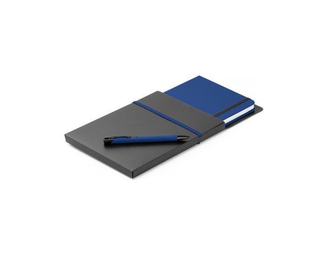 Kit de caderno e esferográfica. C. sintético. Com 80 folhas não pautadas. Fornecido com caixa presente em PP. Esferográfica: ø10 x 137 mm