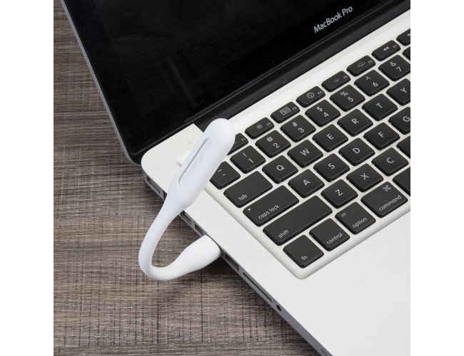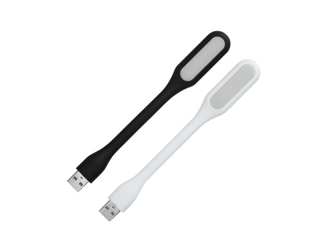 Luminária USB flexível com LED, material emborrachado. Voltagem de saída DC 5V e potência de 1.2 W. Quando utilizar por muitas horas, não ter contato direto com a chapa metálica traseira.