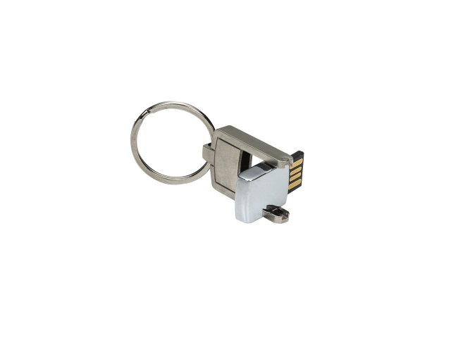 Mini pen drive chaveiro 4GB prata fosco com tampa metak brilhante, acompanha chaveiro.