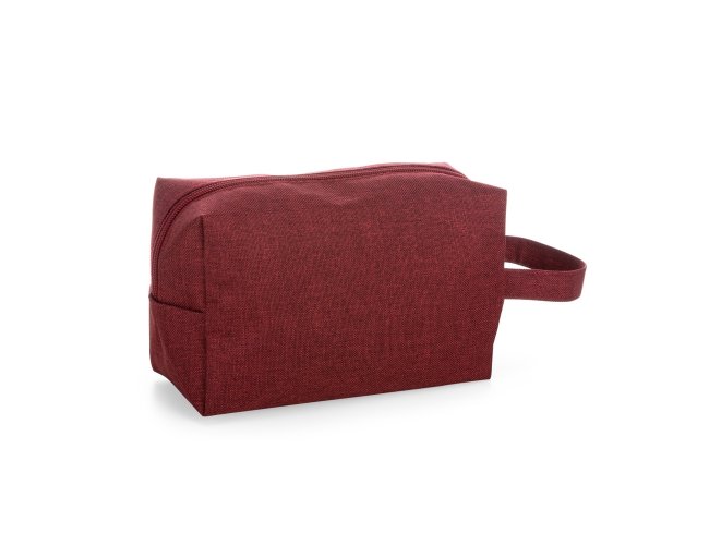 Necessaire de nylon colorido com alça lateral, parte interna com forro de poliéster.
