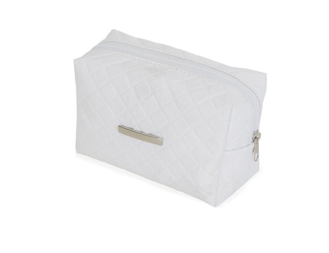 Necessaire puff matelassê, material em couro sintético. Possui uma plaqueta prata no centro para gravação.