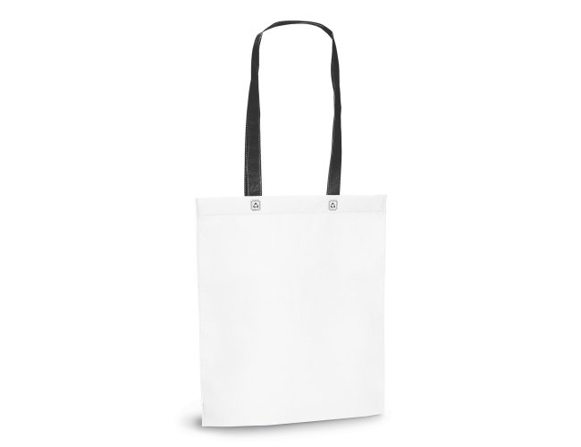 Sacola. Non-woven: 80 g/m². Termo-selado. Alças de 55 cm. 330 x 390 x 80 mm