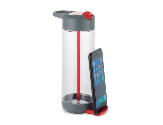 Squeeze. Tritan™. Com suporte para celular. Capacidade até 750 ml. Food grade. Caixa branca 94658 vendida opcionalmente. ø75 x 222 mm