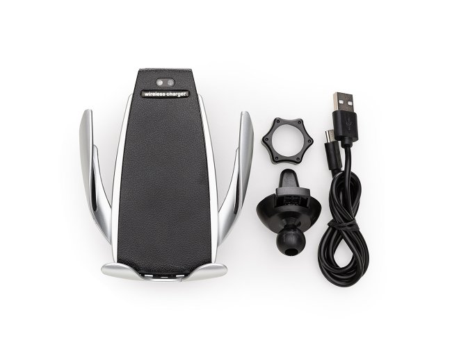 Suporte veicular plástico com carregamento por indução. O suporte possui um sensor de movimento frontal e traseiro para abertura das ?garras?, acompanha cabo USB type-C e presilha ajustável para encaixe do suporte na saída de ar d... Ver mais $(document).ready(function(){ $(#ver_maismob).click(function(){ $(#s_ver_maismob).hide(); $(#comment_2mob).show();});});o automóvel. Não abrir as garras manualmente pois poderá danificar o produto, realize a abertura e fechamento das garras através do sensor de movimento (funciona apenas conectado à uma fonte de energia). O carregamento por indução só é compatível com celulares que possuam tecnologia QI.