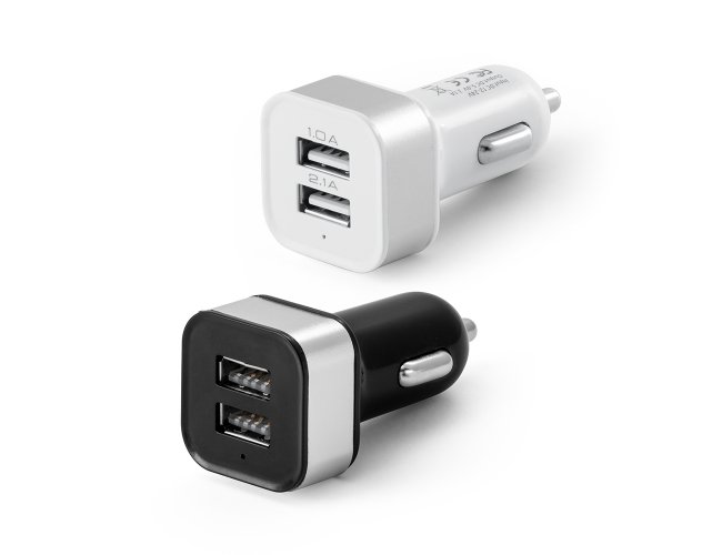 Adaptador de isqueiro para carro. ABS e alumínio. Com 2 saídas 5V/1-2.1